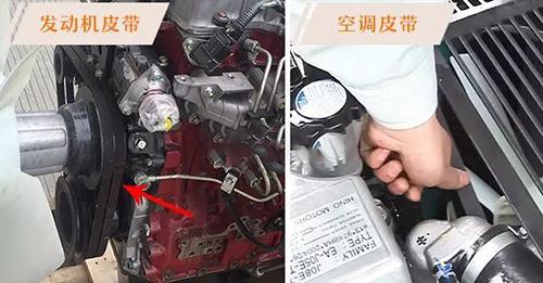 發動機配備有發電機風扇及空調皮帶,所以要檢查這些挖掘機配件是否磨損以及是否有足夠的張緊度來維持其佳性能。檢查皮帶松緊度時,用大拇指按下皮帶的中部,其距離如果在以下表范圍內則屬正常(1N=0.102KG)。張力不足時,皮帶易打滑。張力過大時,易損傷各軸承。