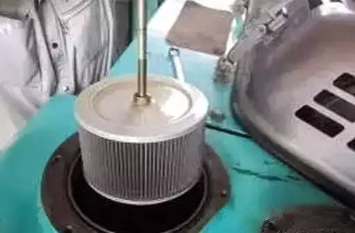 打開泵旁邊的側(cè)蓋,拆下軟管、連接器濾芯,用柴油清洗濾芯后再將其裝上。將液壓油箱、液壓系統(tǒng)內(nèi)部壓力釋放后再作業(yè)。